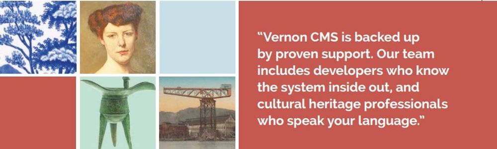 Vernon CMS is a mature Collection Management System that is flexible enough to grow with your needs. With a focus on cultural organisations, we offer powerful and reliable software backed by excellent support. You can download a brochure about Vernon CMS.